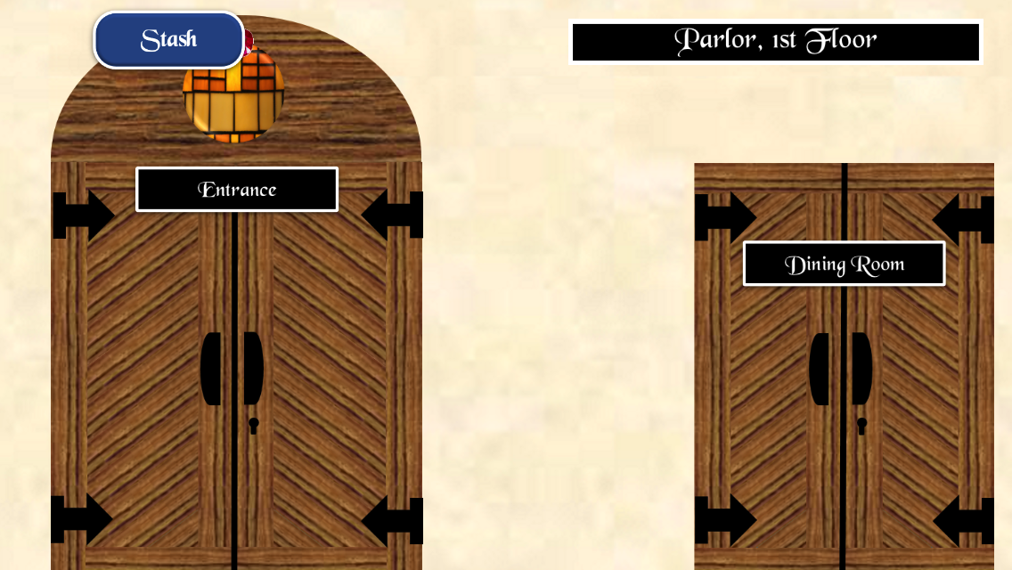 Enter a room by tapping the door. Once in a room, you will see the door you just entered, doors to other rooms, and objects. In the upper right corner, is a navigator that tells you what room and floor you are on.