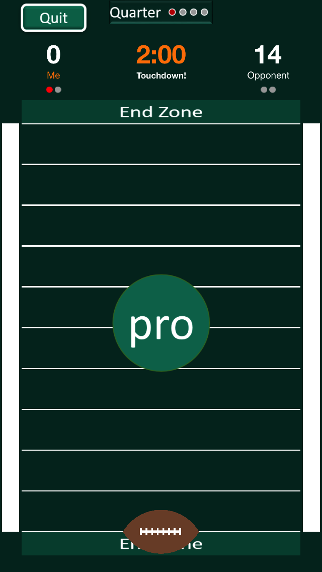 Slide Football is reminiscent of paper football. You can play against the phone or a friend. Against the phone, the Pro mode scores regularly and never goes out of bounds. Score a touchdown by landing directly on the opposing line, and earn 7 points. If you push too hard, the football will go off the board, and you get a penalty. Also, if you delay the game by waiting longer than 10 seconds to make a move, you get a penalty. When you get 3 penalties, your opponent is awarded 3 points.