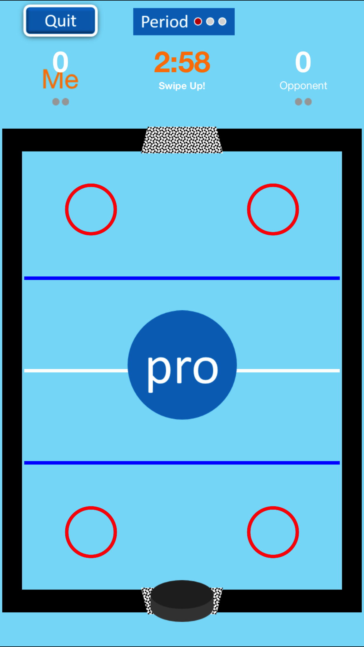 Slide Hockey is a simplified hockey game that you can play against the phone or a friend. Against the phone, the Pro mode scores regularly and zeroes in on the net. Score a goal by landing directly in the opposing net, and earn a point. When you reach the goal line, but do not make it to the net, the game will give a "No Goal" message.