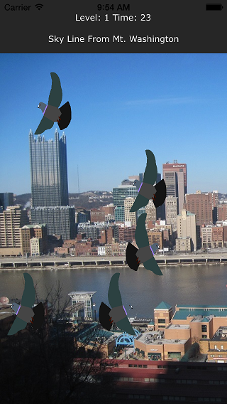 In this game, simply touch all of the pigeons you see on the screen to shoo them off and advance to the next level. The first level starts out with 5 pigeons that are relatively large and slow. As you progress through the levels, the pigeons increase in number and become faster and smaller. There are 50 levels in all and the game becomes challenging very quickly. If you lose, you start over at level one.